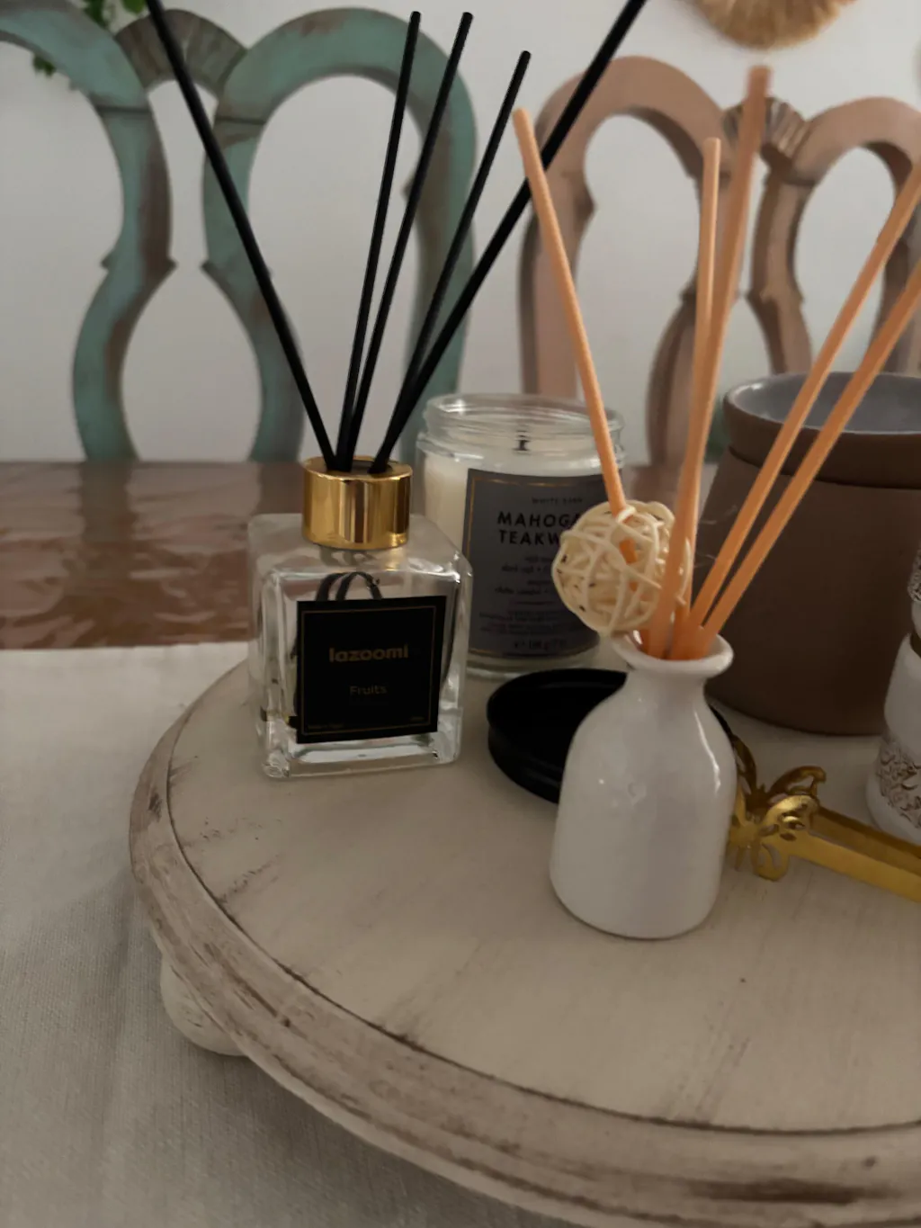 فواحة لازومي هي فواحة عطرية تعتمد على تقنية الأعواد المعطرة لنشر الروائح المميزة داخل المكان. الأعواد ليست بخورًا، بل هي مصنوعة من مواد طبيعية تمتص الزيوت العطرية وتوزعها تدريجيًا في الهواء، مما يمنحك رائحة تدوم لفترة طويلة دون الحاجة إلى إشعالها.